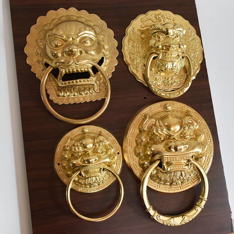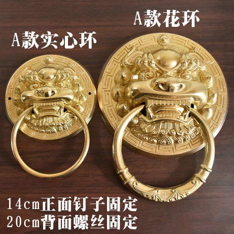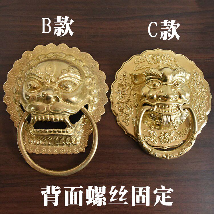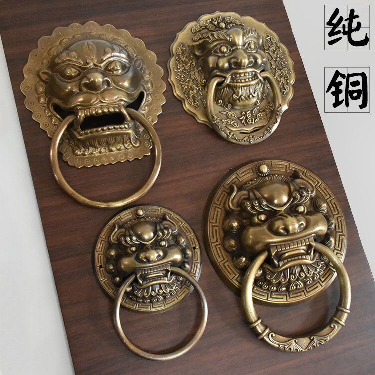 Tiger head handle imitation ancient old pure bronze lion head Chinese style gate head beast head door ring Kirin ancient building wooden door handle-Taobao