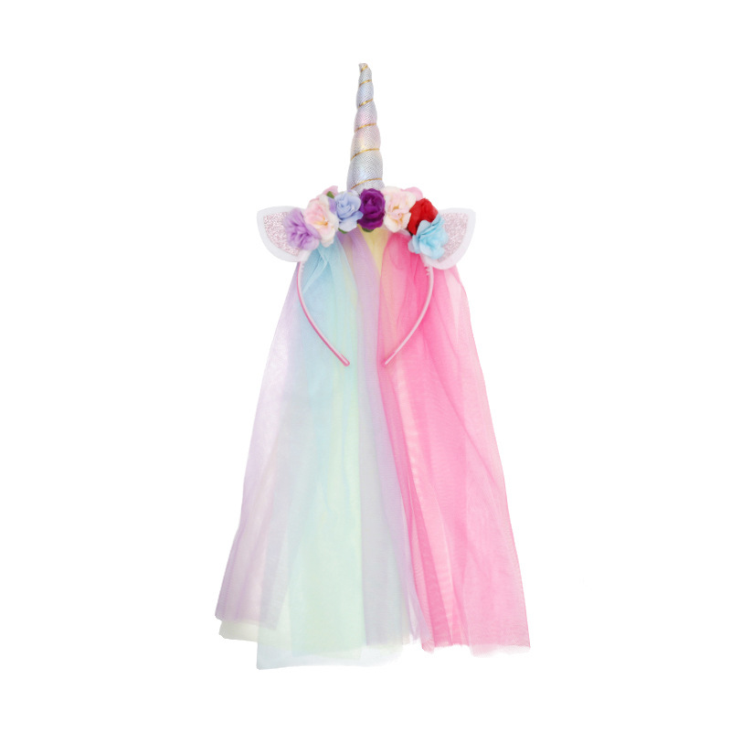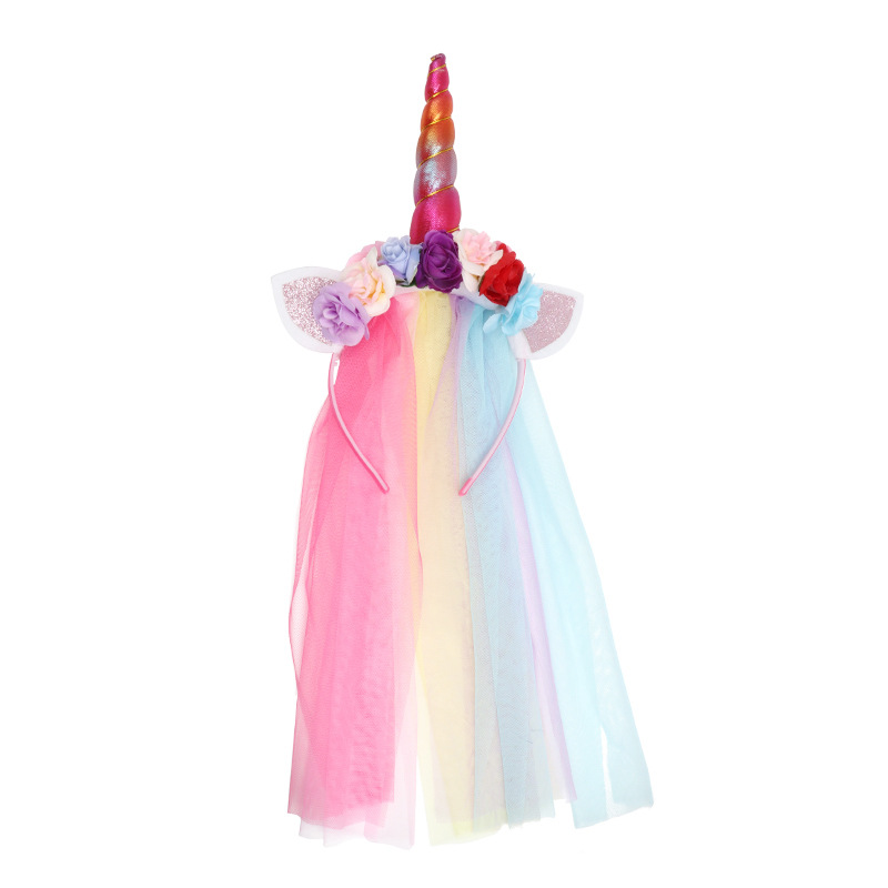 2018 new children's unicorn mesh hair band Christmas headdress baby simulation flower head band birthday hair band