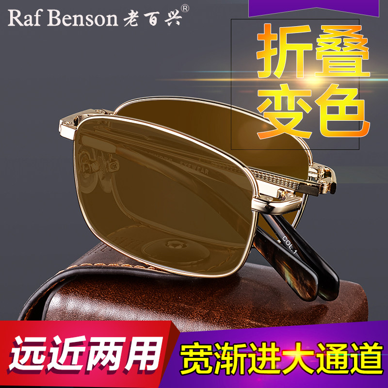 Folding smart presbyopic glasses men's far and near dual-use dual-light discoloration automatic zoom presbyopic glasses portable presbyopic glasses
