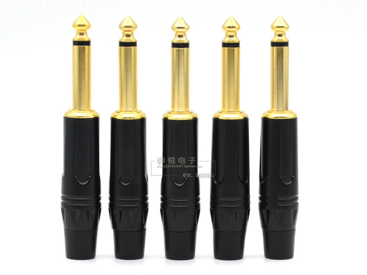 6 35mm big two-core mono in-line microphone connector 6 5 TS audio plug microphone black gold-plated