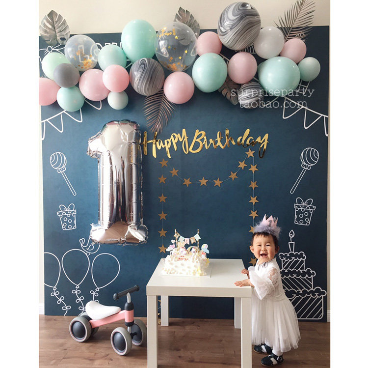 Light Powder Blue Balloon Chain Composition Light Pink Blue Birthday Laqi Rose Gold Digital 1 Seven Colorful Rain Silk Chain 1*2 Mi Light Powder Blue Luxury Package Macaron Blue 5 Macarons Powder 5