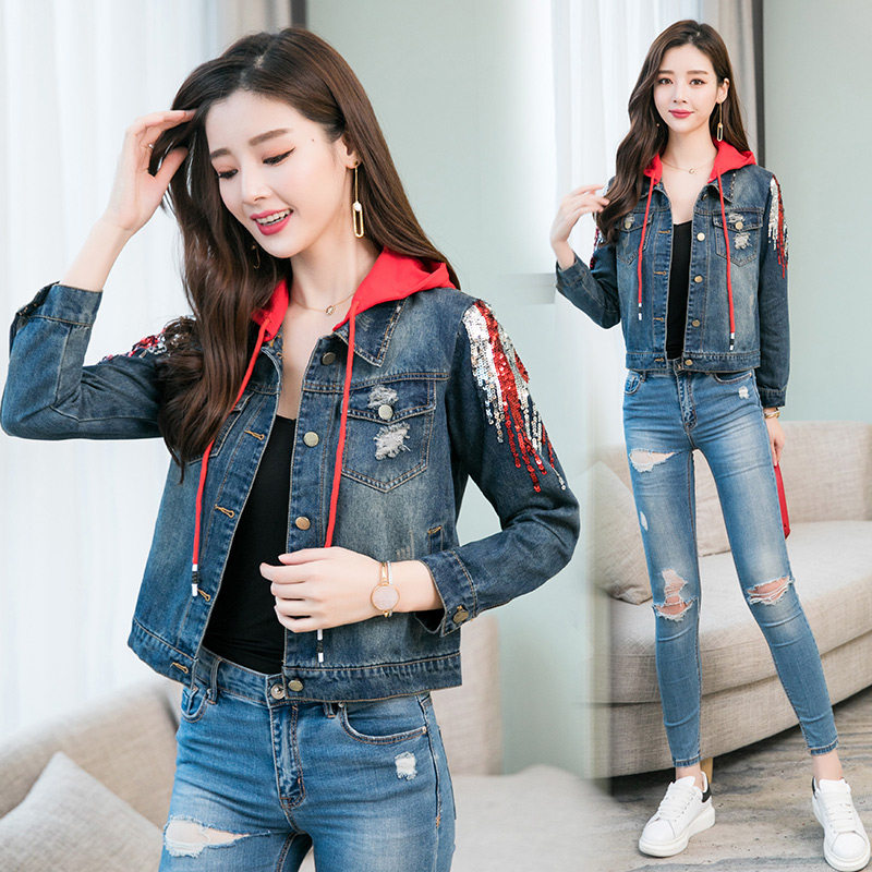 Denim Clothing Thin Short Coat Lady Open Spring Fall 100 Hitch 2022 New Tide Easing Korean Version Casual Little Guy
