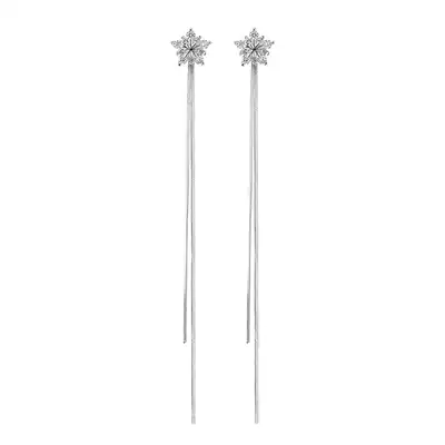 S925 sterling silver needle earrings Korean personality wild snowflake long version tassel earrings super fairy pendant earrings earrings female