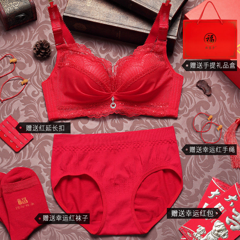 This life year big red bra suit thickened steel lady's underwear small chest gathered to marry new marriage
