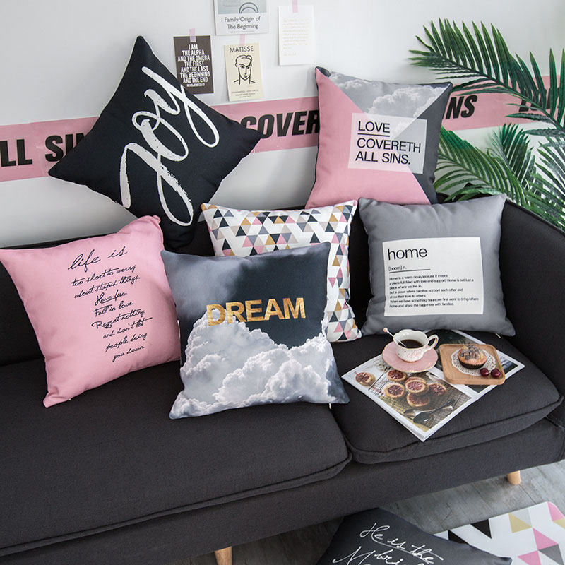 Ins Nordic pillow case core powder color high-grade gray girl double-sided pillow American net red lunch break pillow sofa
