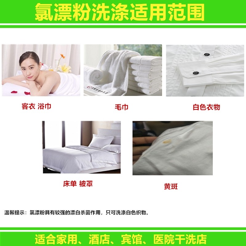 Chlorine bleaching powder, bleaching water, bleaching powder, sterilization, bacteriostasis, streak color removal, white fabric bleaching, washing powder