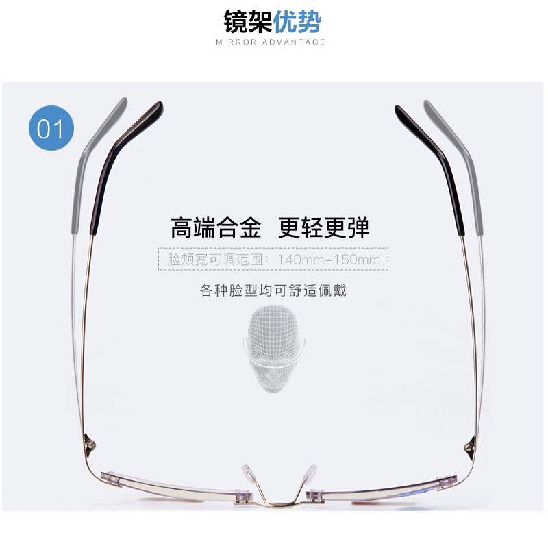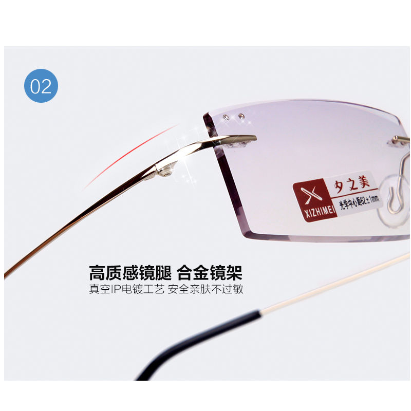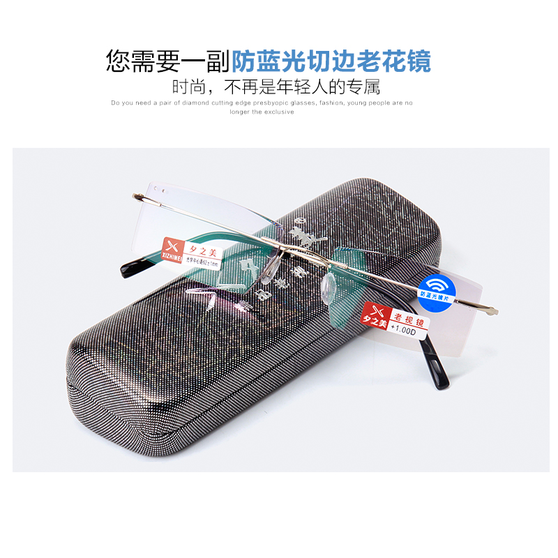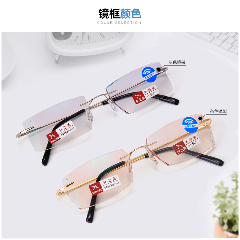 Anti-Blue Light Radiation Old Flower Spectacles Men's Ultra Light Business No Frame High-definition Cut Edge Inlaid Diamond Old Light Glasses Frame