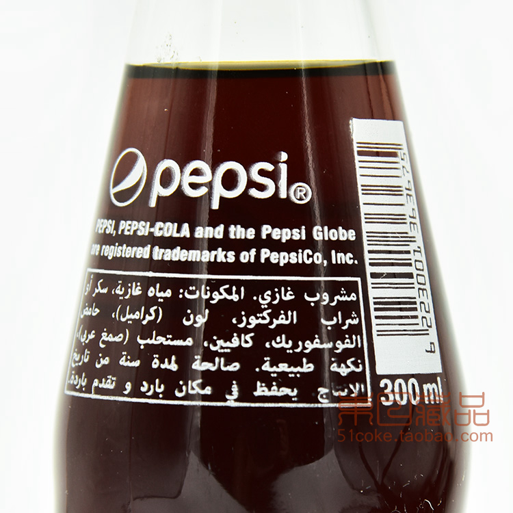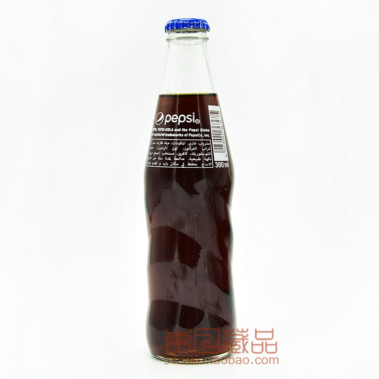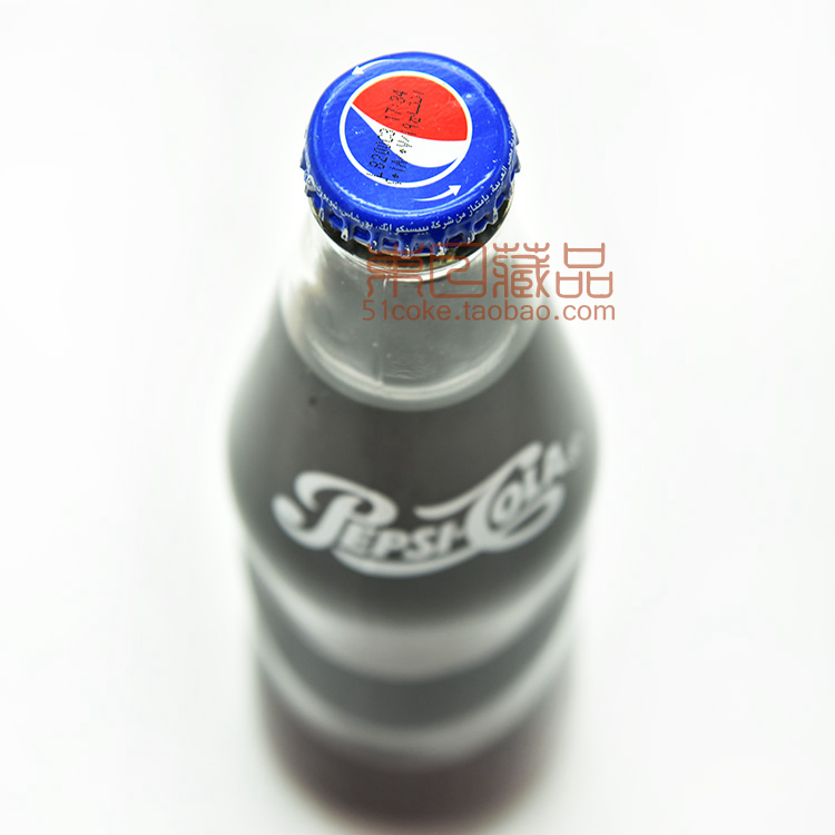 Metal thread screw cap full of water Egyptian Pepsi 300ml Vintage text recycled glass bottle Blue cap