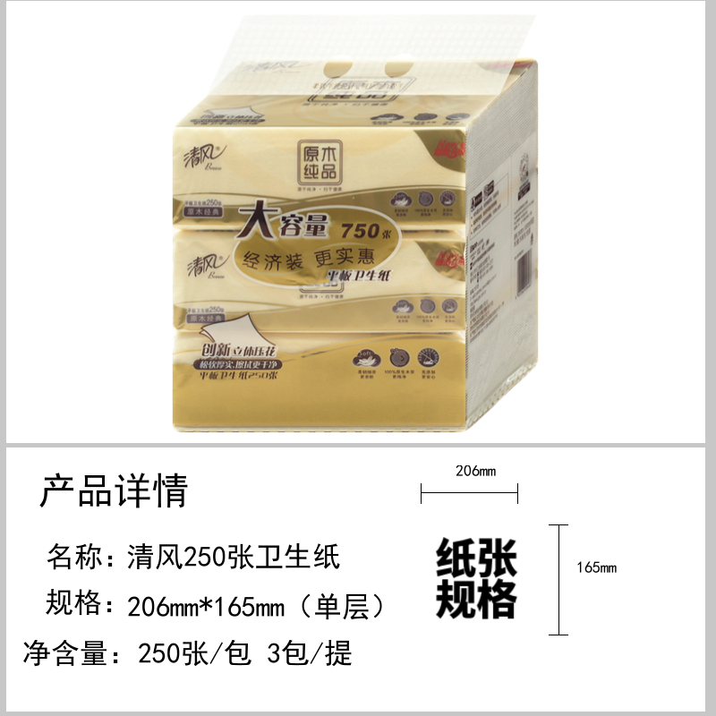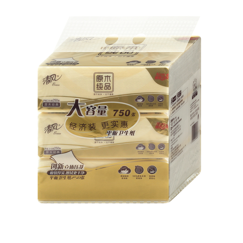 Breeze flat toilet paper 250 sheets of log square embossed household straw paper toilet paper hand wipes 4 12 packs