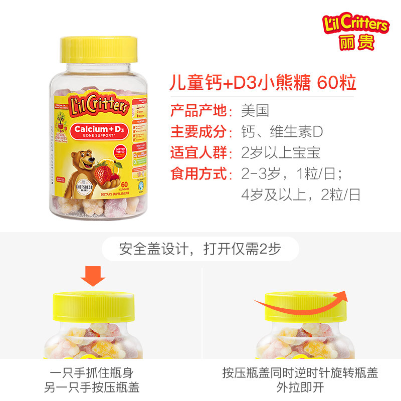 Ligui Lilcritters Import Little Bear Sugar Child Tonic Calcium d3 Phosphorus Milk Calcium Small Bear Calcium Tablet Vitamin Soft Sugar