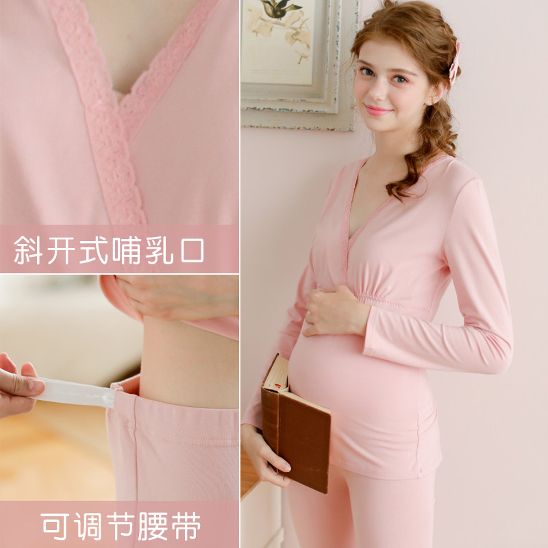 Lunar Subsuit Pregnant Woman Autumn Clothes Sanitary Pants Suit Lactation Pyjamas Woman Non Pure Cotton Autumn Winter Maternal Postnatal Fever Coat