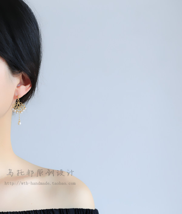 Feather fan, court retro, national style, elegant Chinese style, dinner series, 925 sterling silver pearl earrings, ear clips