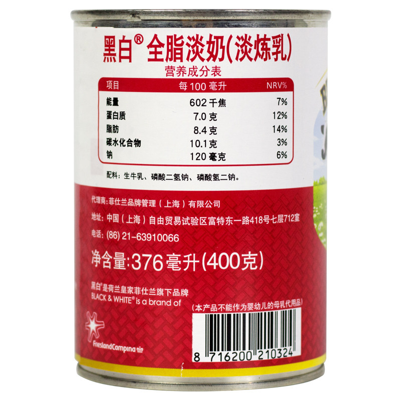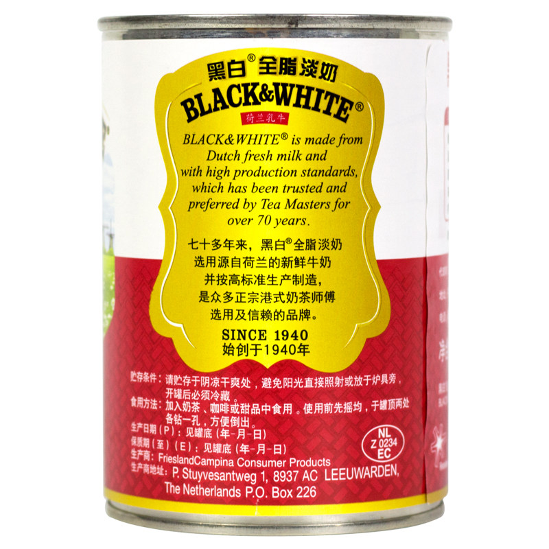 Imported Dutch black and white light milk whole box full fat light condensed milk Hong Kong stockings milk tea shop special raw materials 400g*48