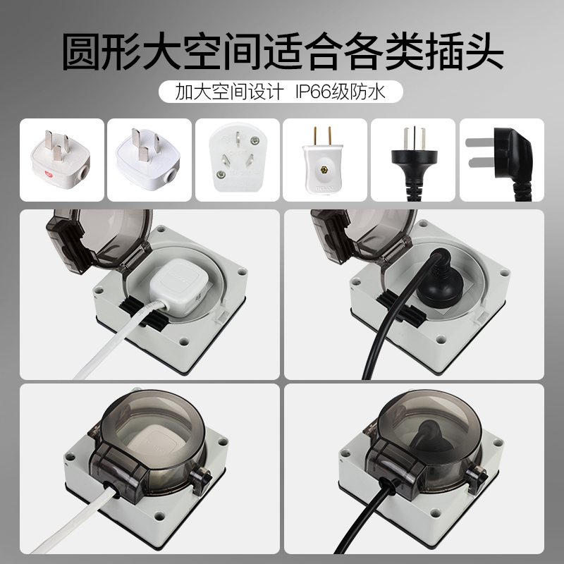 Type 86 Outdoor Concealed waterproof socket 10A 23 plugged wall panel Power socket Indoor waterproof rain-proof
