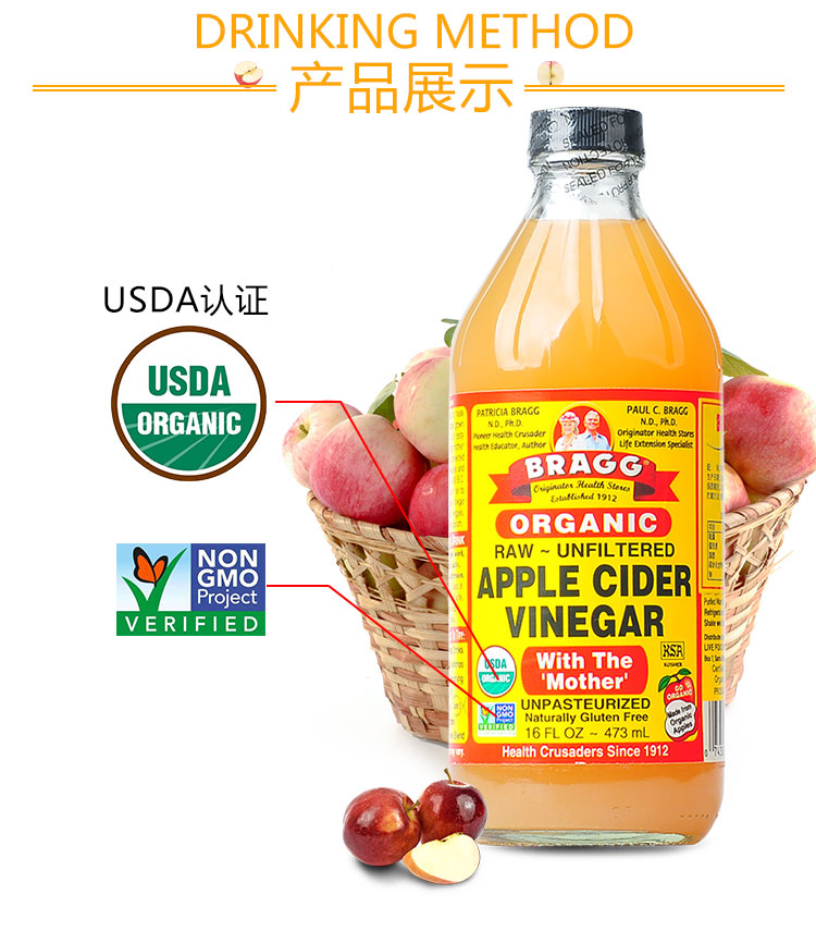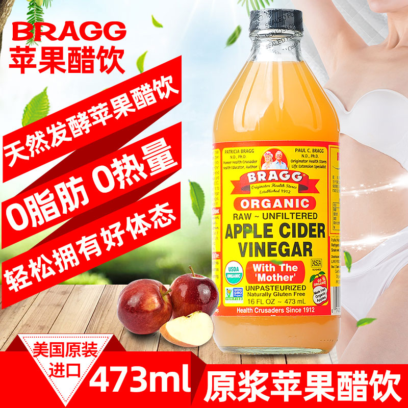 Bragg American Import Raw Pulp Concentrated Apple Vinegar Beverage Fitness Fermented no sugar type No fat 0 sugar