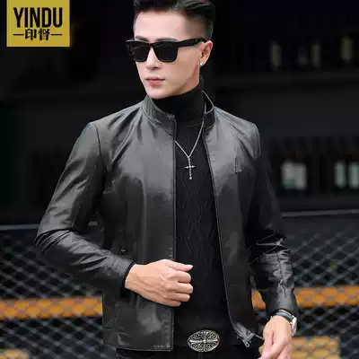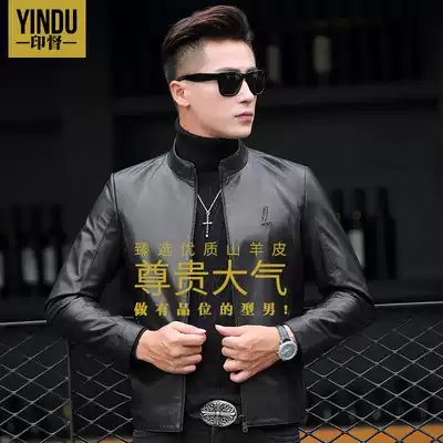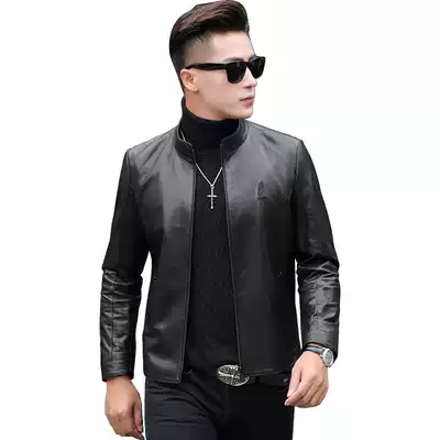 Spring and autumn new standing collar Haining leather leather clothing men's goatskin casual leather jacket short slim thin jacket