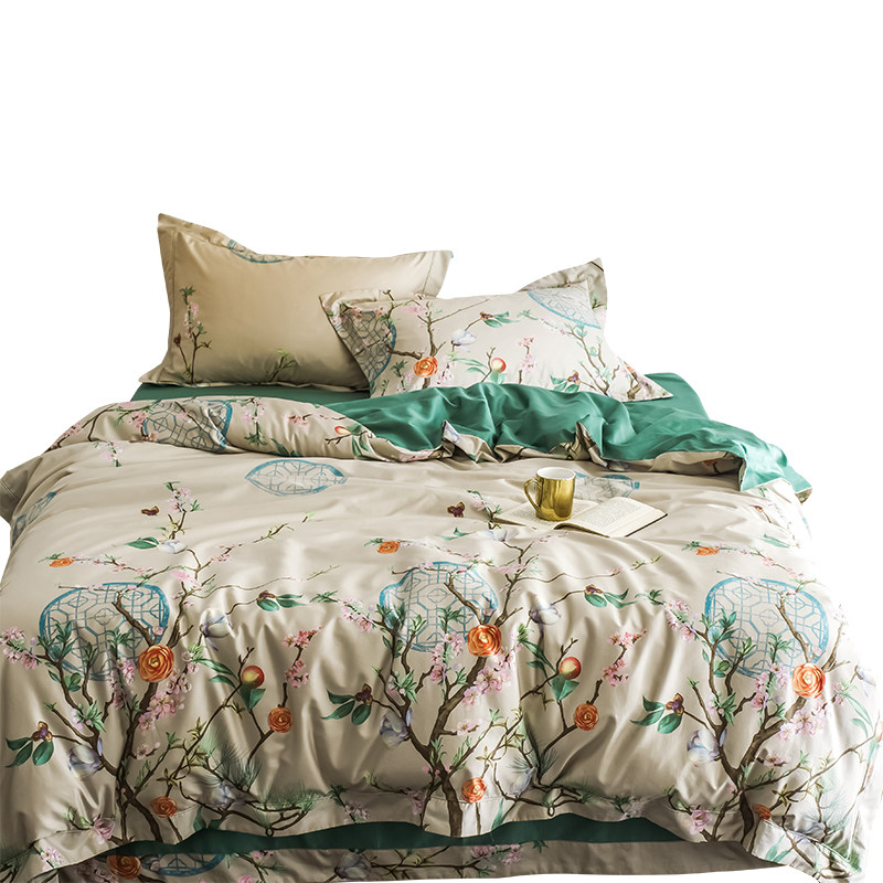 High-end Chinese style Huagui 140 full cotton gon satin horse cotton four pieces of pure cotton light and luxurious Chinese wind kit