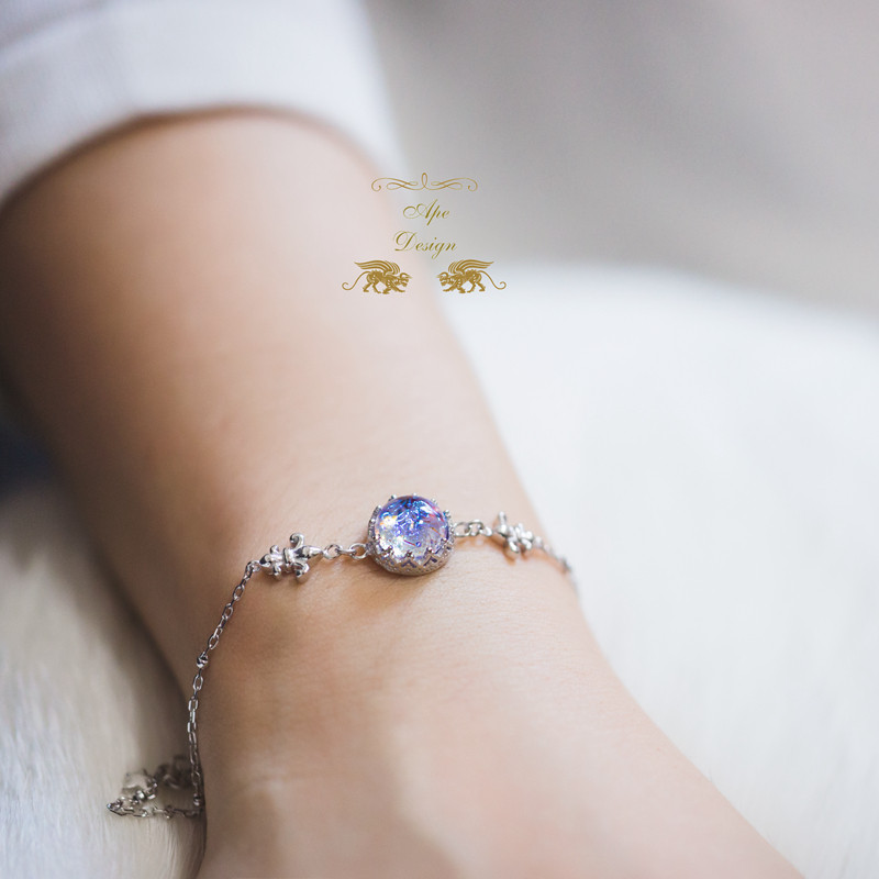 Willow white ape hand-made Western retro Iris magic color glass 925 silver bracelet