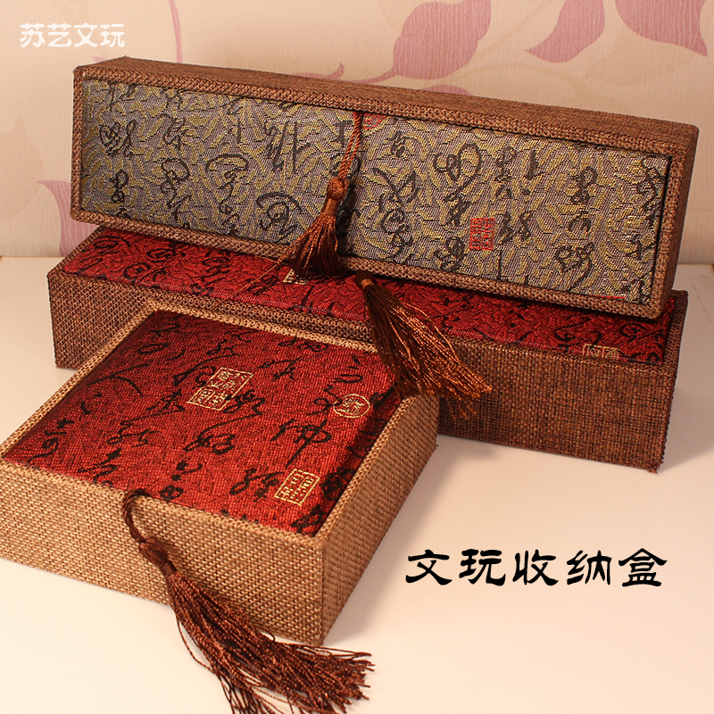 Jewelry Packaging Box Jade Bracelet Buddha Bead String Necklace Ring Linen Tassel Storage Gift Box Chinese Style Play