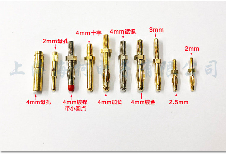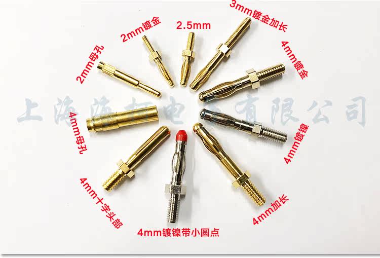 2mm 2mm gilded short male head One 2mm gold plated long version male head One 2 5mm gilded male head One 3mm gilded male head One 4mm gilded male head One 4mm nickel plated male head one