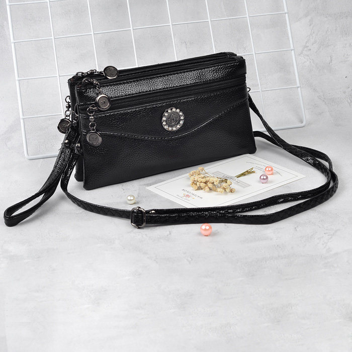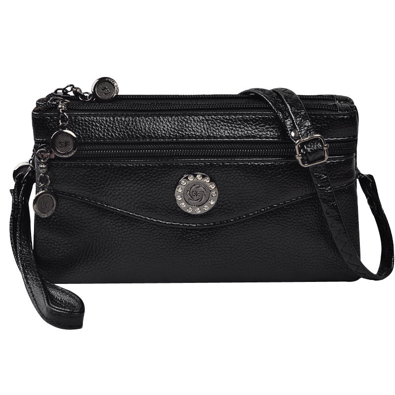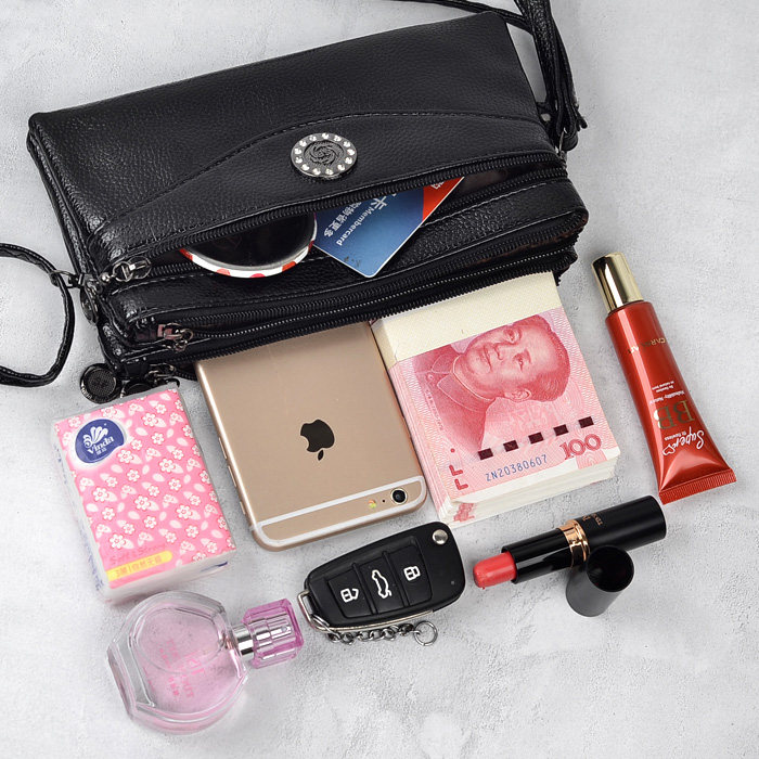 New pint soft leather 4 zipped double single shoulder inclined satchel with bag lady zero money key phone wrist bag 100 hitch-Taobao