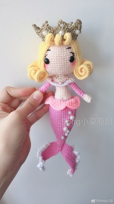 New crochet doll illustration Disney#Mermaid Belle Elsa Princess Non-finished non-material package