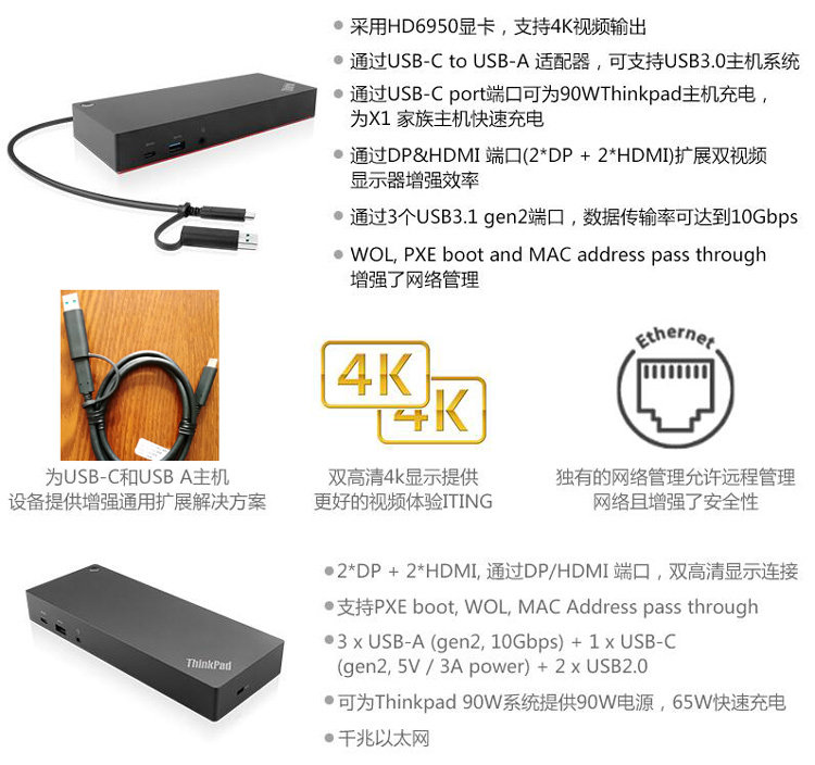 Lenovo ThinkPad Hybrid USB-C docking station X1 P1 X390 X280 T490 T480 R490 E