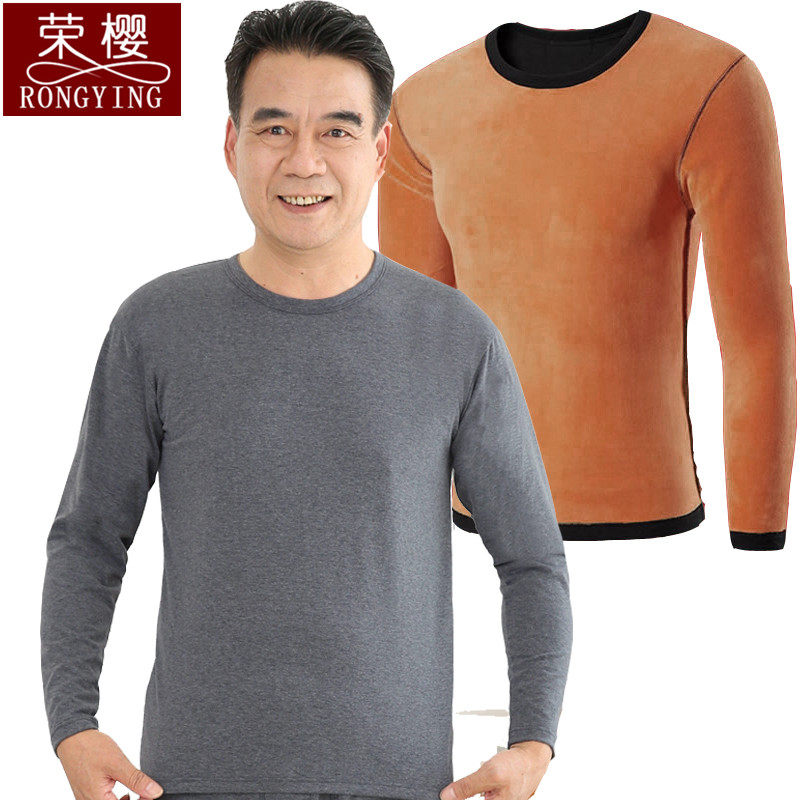 Ultra-thick round collar calorific coat thickened with suede men's single-piece blouse for aged suede gold A winter daddy dress