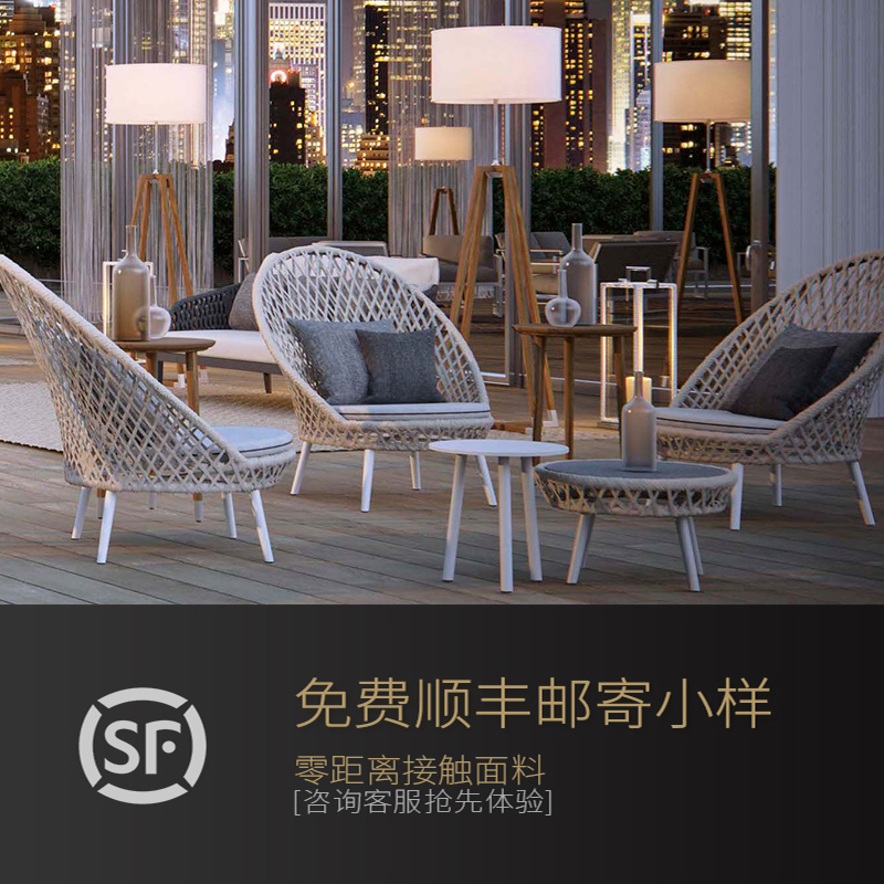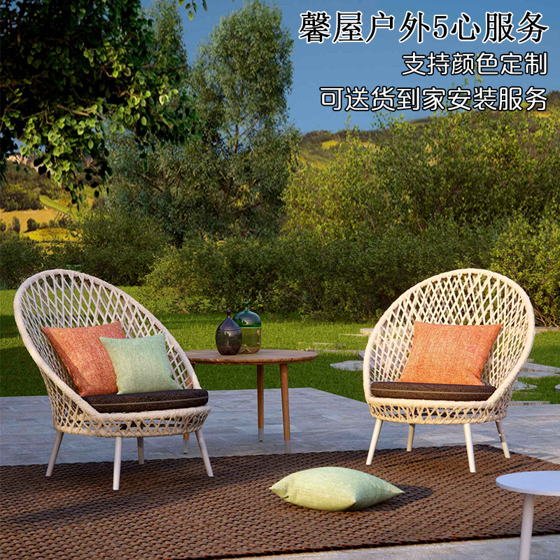 Rattan chair coffee table combination three-piece courtyard small coffee table combination outdoor rattan white Nordic simple leisure table and chairs