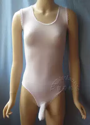 Ultra-thin transparent swimsuit style stockings vest male sex jumpsuit see-through men with set of stockings underwear 3058
