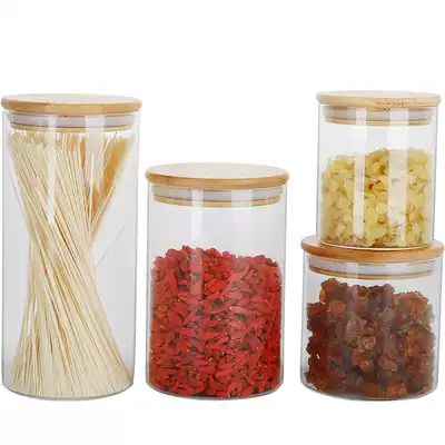 Household transparent glass tea sealed jar storage jar small bottle jar food grain storage box with lid