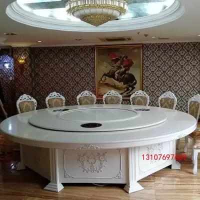 European-style electric dining table and chair combination hot pot table round table Hotel large table 20 people turntable Hotel dining table large round table