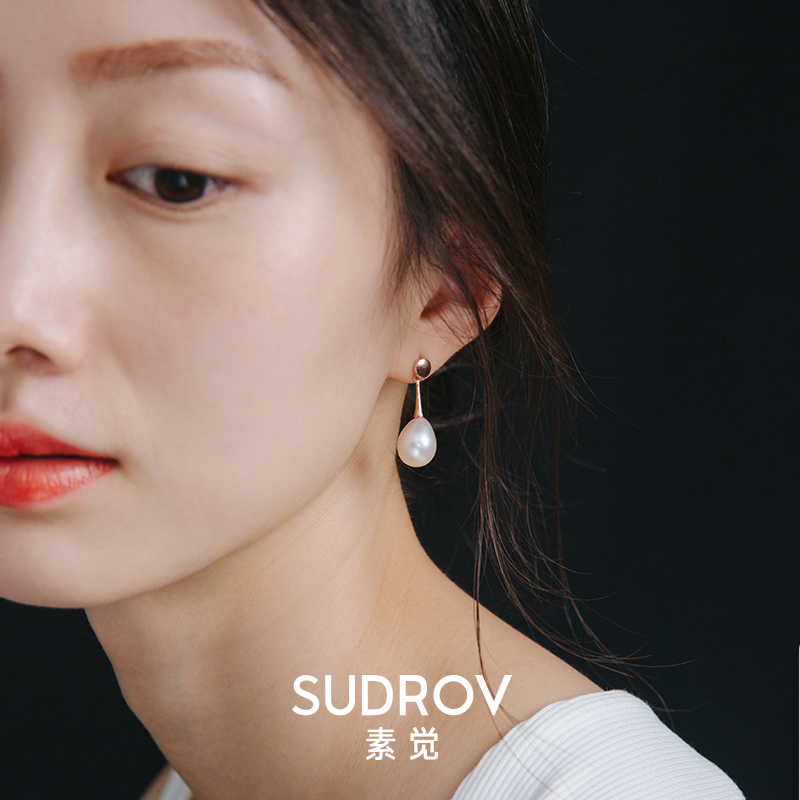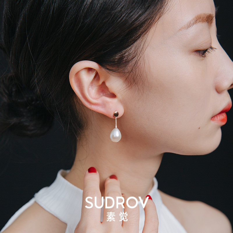 Sujue 925 sterling silver large pearl drop earrings women retro Baroque earrings Simple cold air quality earrings stud earrings