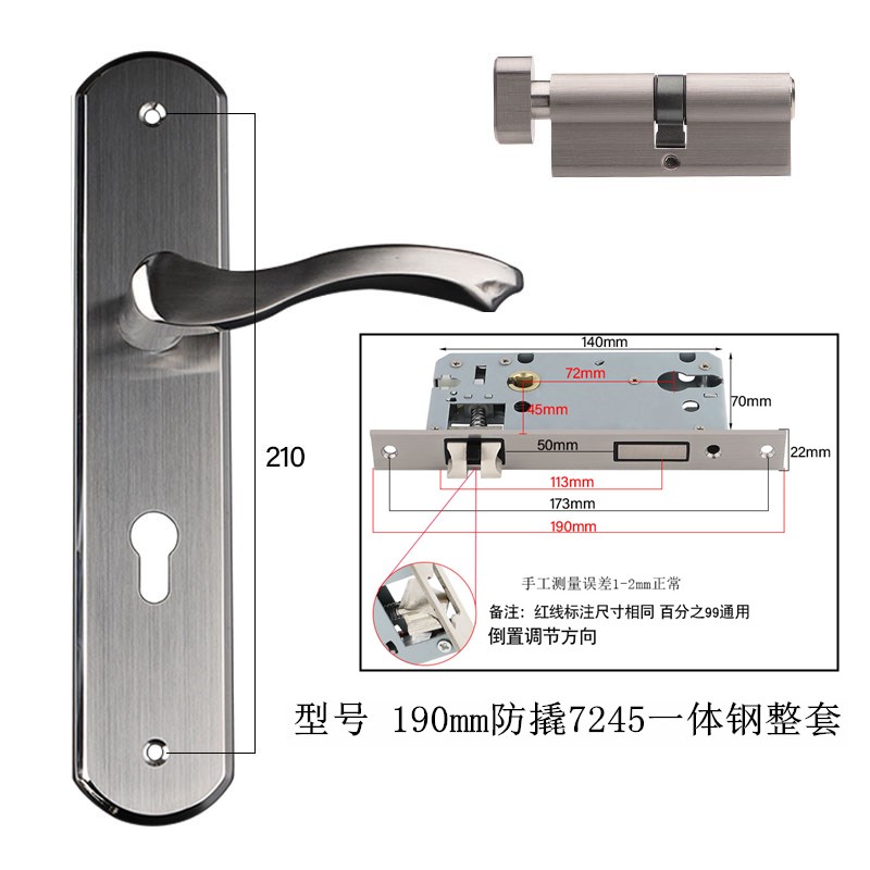 Square 190mm7245 heavy spring lock body square 190mm7245 two-piece steel round 175mm7245 two-piece sand black square 190mm7245 two-piece white square 190mm7245 steel stainless steel panel (does not include lock body lock core)