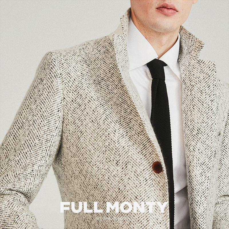 FULL MONTY SPRING AUTUMN WHITE HERRINGBONE Herringbone Tattooing with flat refuting collar coat business casual sweaters jacket jacket