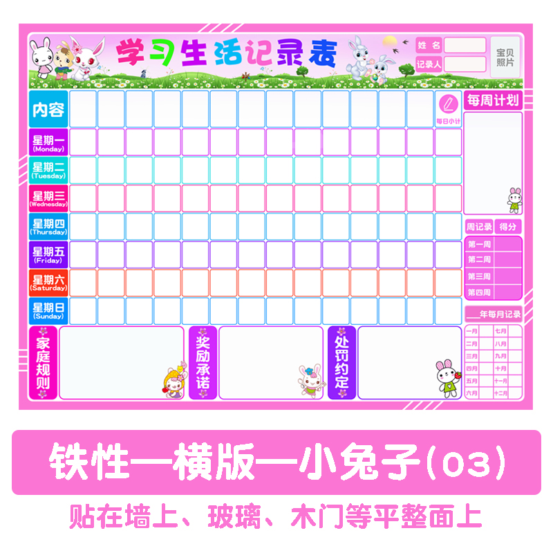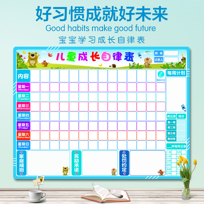 Children's Award Self-discipline Table Home Primary students study class schedule Baby Kindergarten Good Habit Life Performance column Reward Attendance Record Table Wall Sticker Schedule Growth Self-discipline Watch