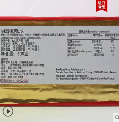 PRESIDENT CREAM 500g FRENCH ORIGINAL Imported Edible Animal Faint Fermented Cream Nuggets * 20 Block