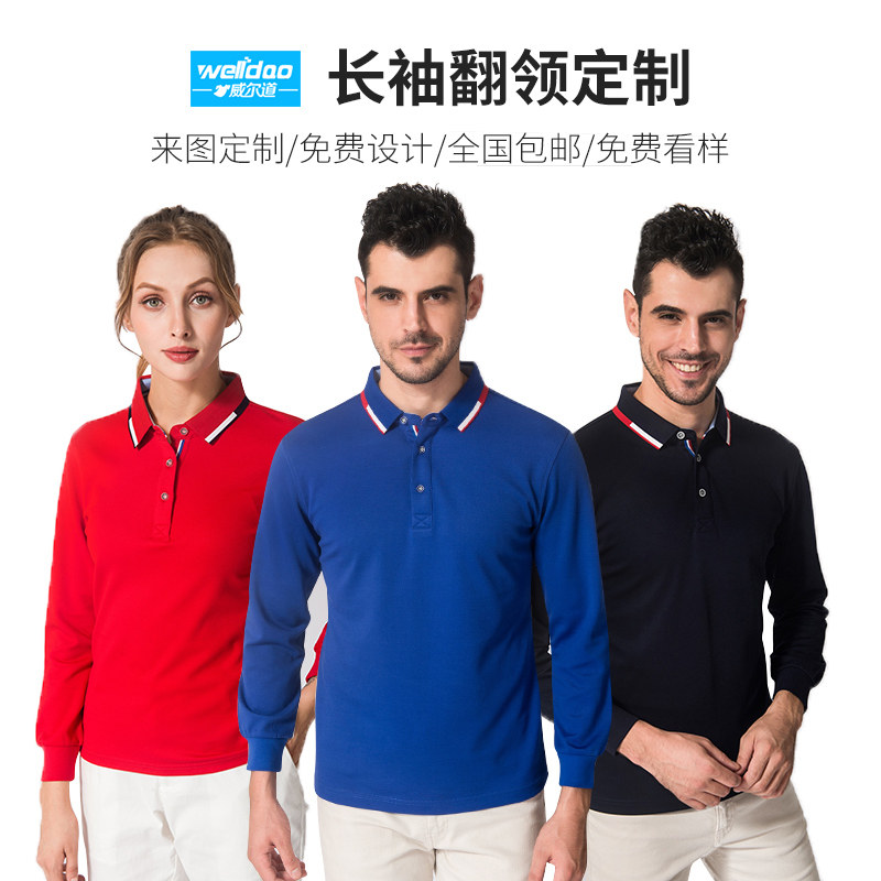 T-shirt custom autumn and winter cotton lapel embroidery work clothes printed logo party long sleeve POLO shirt custom