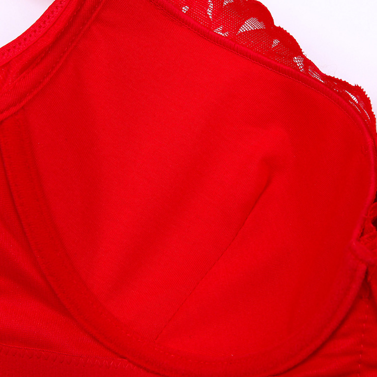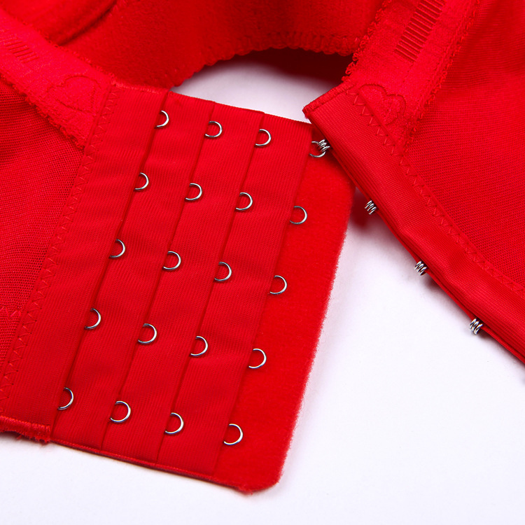 Red year of life transparent bra adjustment underwear Women's ultra-thin sexy lace wedding bra large size large chest is small