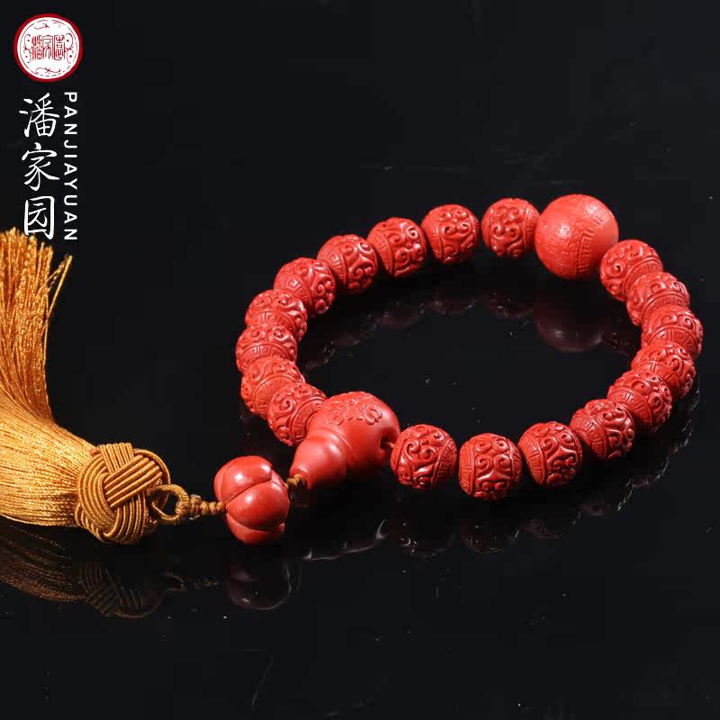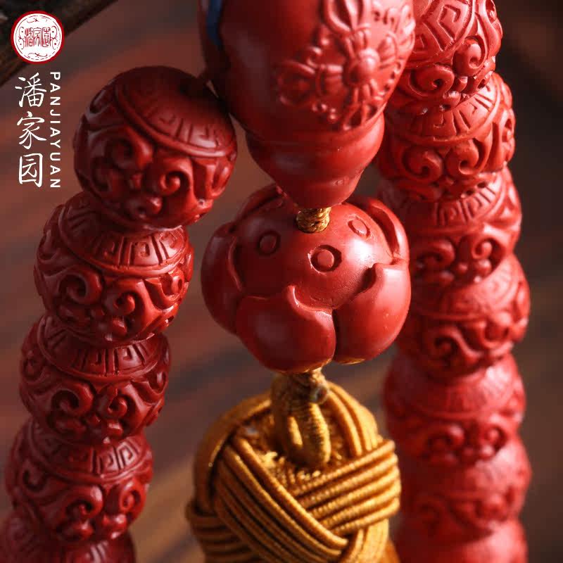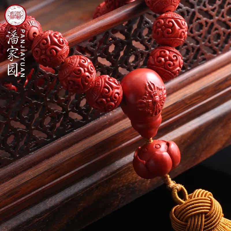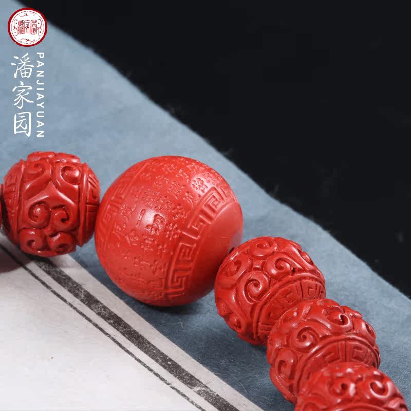 Panjiayuan natural cinnabar traditional craft back pattern bead heart sutra eighteen hand-held car pendant men and women bead bracelets