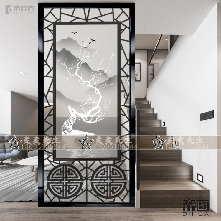 Chinese style decorative tempered glass frosted creative art screen living room dining room bedroom partition entry porch lattice