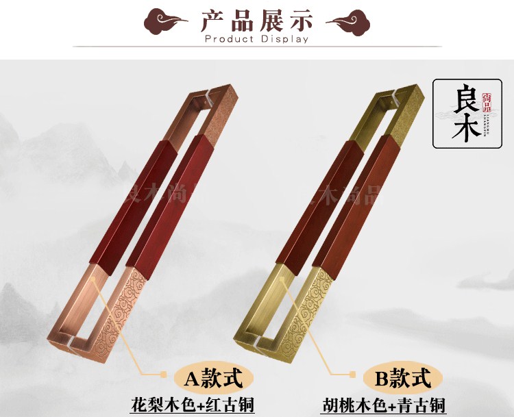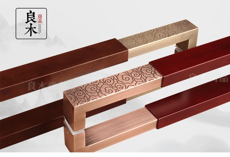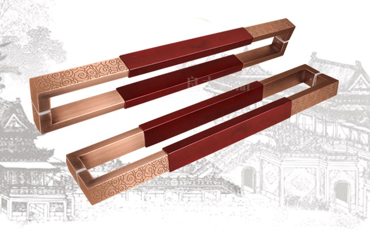 Chinese imitation ancient Xiang Yunqing ancient bronze color square pipe glass door handle solid wood hotel clubhouse wood door handle red ancient bronze