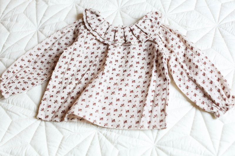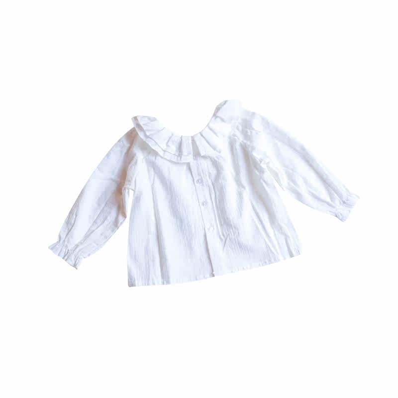 2022 Spring and autumn models Korean version of baby girl's undershirt girl baby printed 100 plexico collar doll-shirt pure cotton jacquard shirt