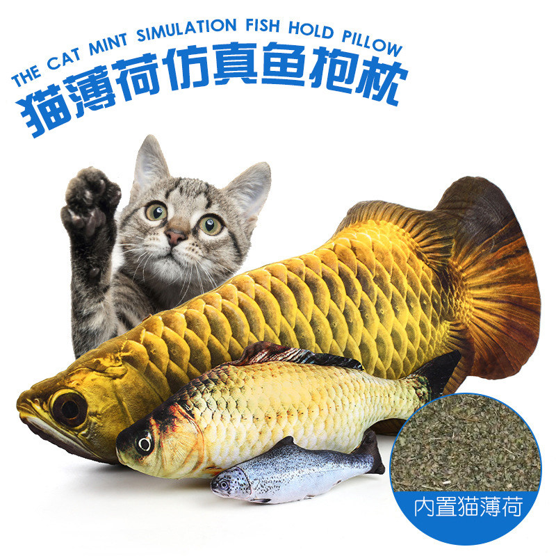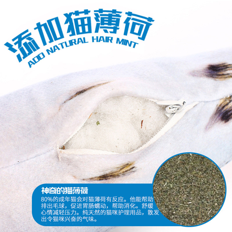 Cat toy mint fish cat teasing cat stick simulation molar biting kitten pillow plush bohe cat supplies