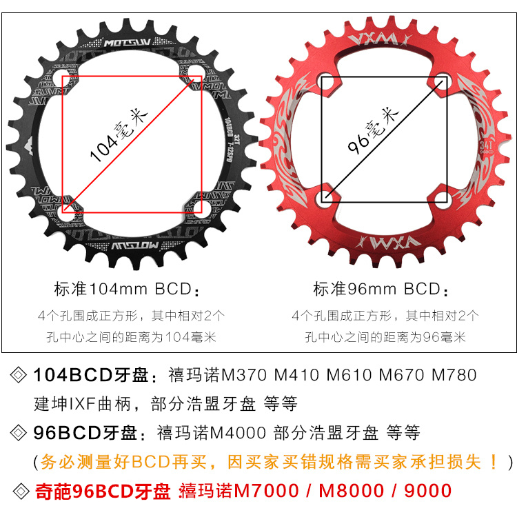 Positive and negative tooth disc Mountain bike single disc elliptical disc 104 96BCD 32 34 36T 38 40 42T