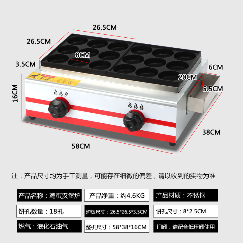 Egg burger machine stove Commercial gas gas Chinese egg 18 hole meat burger machine Red bean cake machine Egg burger machine