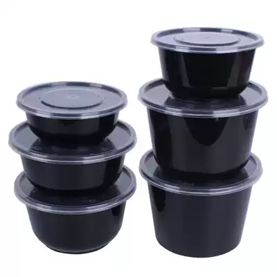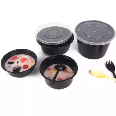 Disposable lunch box round environmental protection bowl 1000ml Soup bowl with lid Black delivery tableware packaging plastic lunch box