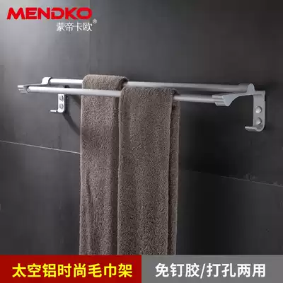 Towel rack powder room rack wall adhesive hook bathroom towel bar double pole balcony non-perforated wall storage