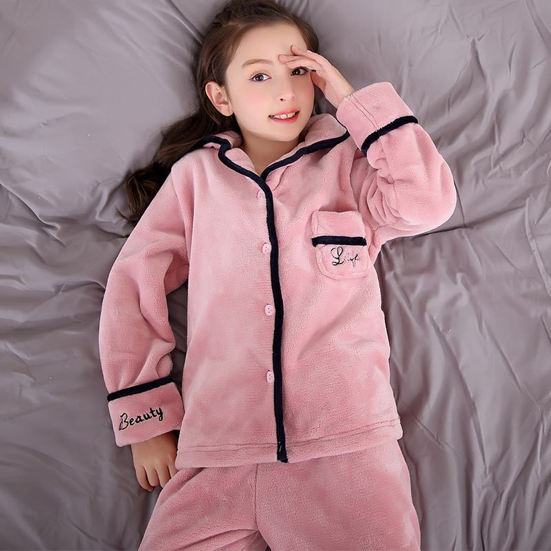 Children's pajamas Girls flannel winter thickened section warm children's little girl Coral velvet princess autumn and winter section