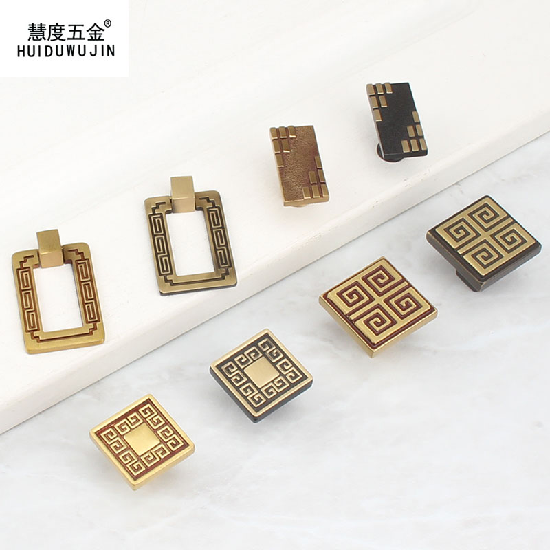 HOT SELL SOLID PURE COPPER GOLD SMALL HANDLE NEW CHINESE CABINET CABINET WARDROBE HANDLE EU TYPE DRAWER BLACK GURRA RING